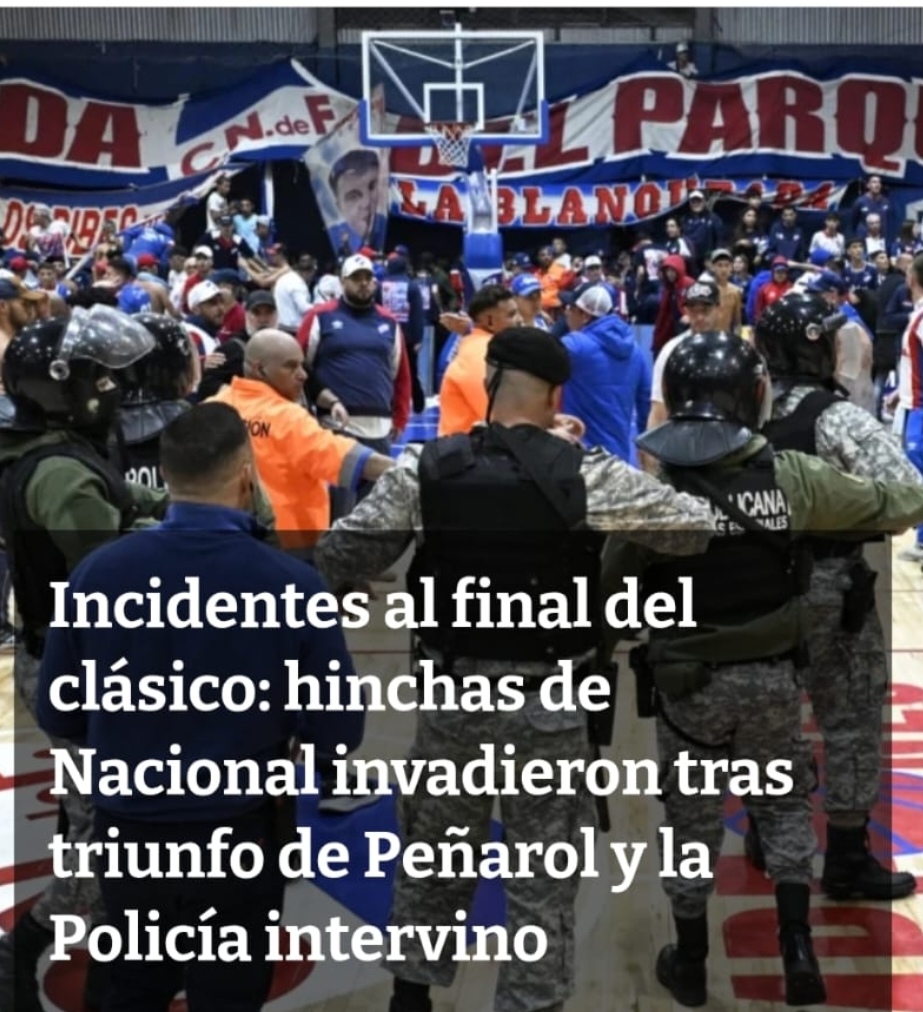 Peñarol derroto a Nacional 84 a 82 y esta cerca de asegurarse el puesto 1 para los Play Off de cuartos de Final. Los tres primeros cuartos fueron favorables a Peñarol pero en el último parcial hubo reacción tricolor y el final fue cerrado y tenso. Finalizado el juego hubo parciales tricolores qué ingresaron al rectángulo, y la policía tuvo que intervenir.